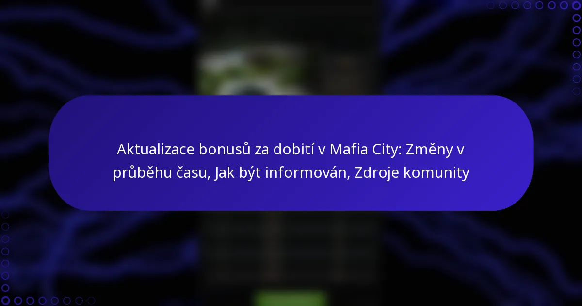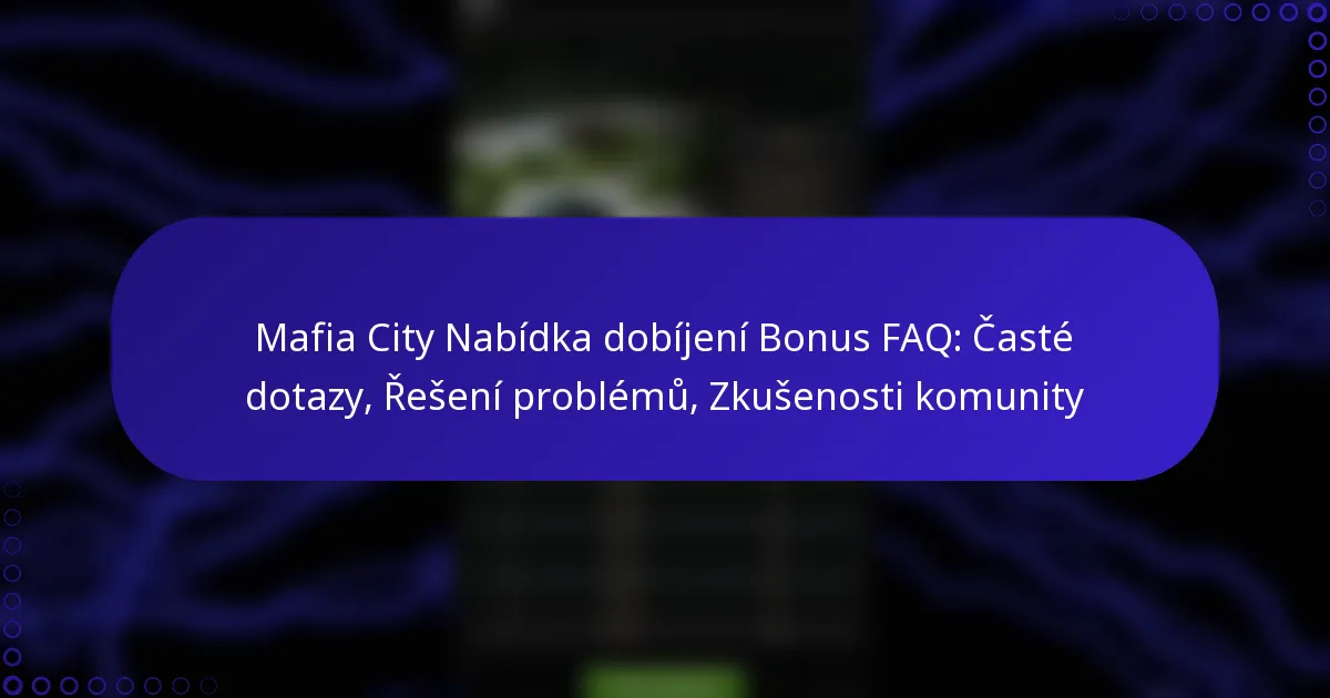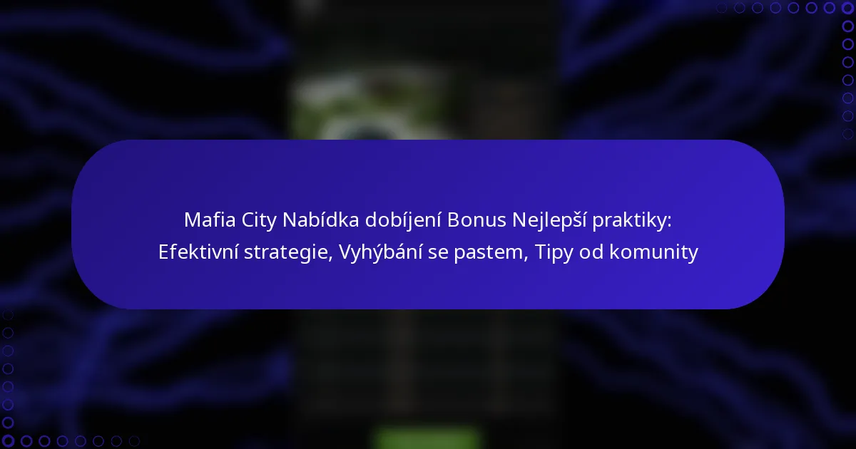 Bonusy za dobití v Mafia City jsou odměny, které hráči získávají za nákup herní měny nebo předmětů. Tyto bonusy mohou zlepšit hru tím, že poskytují další zdroje nebo exkluzivní předměty, které zlepšují hráčský zážitek.